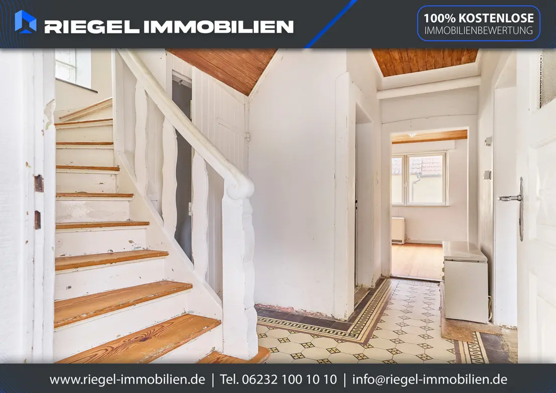 …Immer aktuell mit der RIEGEL – APP, kostenlos im APP Store herunterladen… Hallo Zukunft…….. Maisonette mit Potenzial & moderne Einliegerwohnung Diese Maisonette-Wohnung, erbaut um ca. 1924 im traditionellen Pfälzer Stil, besticht durch seine charakteristische Haus- und Hofbauweise, die typisch für diese Region ist. Im vorderen Bereich an der Straße mit gemeinschaftlichen Hofbereich gelegen, der den zentralen Zugang für beide Wohneinheiten, ergo zum Hinterhaus bietet. Diese Maisonette-Wohnung bietet großzügige Wohnräume, die vielseitige Nutzungsmöglichkeiten eröffnen. Die Zimmer sind geräumig und gut geschnitten, jedoch renovierungsbedürftig, was neuen Eigentümern die Chance bietet, die Räume nach eigenen Vorstellungen zu gestalten und das Haus auf den neuesten Stand zu bringen. Die solide Bausubstanz und der klassische Grundriss bieten eine gute Basis für individuelle Renovierungsprojekte. Ergänzt wird dieses Wohnkonzept durch eine moderne Einliegerwohnung im Obergeschoss des Anbaus, die 2021 errichtet wurde. Über eine separate Außentreppe erreichbar, ist dieser Bereich ideal für Gäste, erwachsene Kinder oder zur Vermietung geeignet. Ein ideales Zuhause für Familien, die das Leben auf dem Land genießen möchten, ohne auf modernen Wohnkomfort zu verzichten. Einteilung: Maisonette-Wohnung mit ca. 116,53 m² Wohnfläche: Erdgeschoss: Eingangsbereich/ Flur mit Waschmaschinenanschluss, Flur, Tageslichtbad mit Dusche, Waschbecken und Toilette, Wohnküche, Zimmer, Wohnzimmer Dachgeschoss: Flur, 3 Zimmer, davon 2 Durchgangszimmer Keller: 3 Kellerräume Anbau: Wohnung mit Ca. 40,74 m² Wohnfläche Einliegerwohnung mit Balkon/ Freisitz im Eingangsbereich, Abstellraum, 2 Zimmer, Küche mit Klimagerät, Tageslichtbad mit Dusche, Waschbecken und Toilette Geräteraum/Hauswirtschaftraum, 2 großzügige Räume die zur Zeit als Werkstatt genutzt werden Weitere interessante Immobilienangebote finden Sie unter www.riegel-immobilien.de Wir freuen uns auf Ihren Anruf unter: Niederlassung Speyer 06232 100 10 10 oder Niederlassung Ludwigshafen: 0621 5200 8800