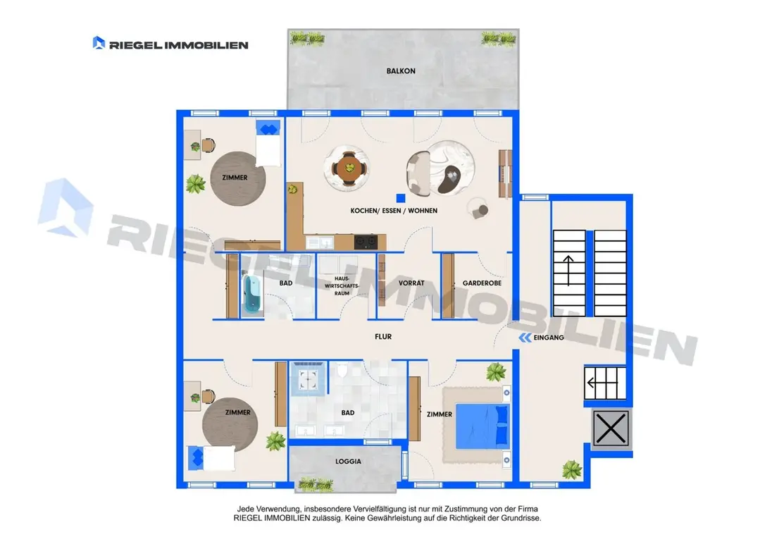 …….Immer aktuell mit der RIEGEL APP, kostenlos im APP Store herunterladen…… Hallo Zukunft…… Stilvolles Wohnen in ruhiger Innenstadtlage von Speyer – mit Personenaufzug und zwei Tiefgaragenstellplätzen In einer der ruhigsten und zugleich zentralsten Wohnlagen von Speyer präsentieren wir Ihnen diese architektonisch ansprechende und hochwertig ausgestattete Eigentumswohnung. Das Gebäude wurde mit einem klaren Blick für zeitlose Eleganz und modernen Komfort konzipiert und bietet dank Personenaufzug und barrierefreiem Zugang ein bequemes Wohnumfeld für jede Lebensphase. Die Wohnung befindet sich im 2. Obergeschoss eines gepflegten Mehrfamilienhauses und überzeugt mit einer großzügigen Wohnfläche von ca. 131,05 m² sowie einer gelungenen Raumaufteilung. Die Kombination aus offen gestalteten Wohnbereichen, zwei modern ausgestatteten Badezimmern und zwei großzügigen Außenbereichen mit Blick ins begrünte Innenareal der Anlage schafft ein stilvolles und gleichzeitig wohnliches Ambiente. Die gesamte Architektur der Anlage besticht durch ein harmonisches Zusammenspiel aus warmen Materialien und klaren Linien. Im Innen- wie im Außenbereich finden sich liebevoll abgestimmte Details, die ein Gefühl von Hochwertigkeit und Behaglichkeit vermitteln. Alle Etagen des Hauses – inklusive der Tiefgarage – sind bequem per Aufzug erreichbar. Zwei komfortable Tiefgaragenstellplätze gehören ebenfalls zur Wohnung und runden das Angebot perfekt ab. Diese Wohnung vereint urbanes Wohnen mit hochwertiger Ausstattung und einer ruhigen Lage – ein ideales Zuhause für alle, die Stil, Komfort und zentrale Lage schätzen. Lassen Sie sich von der klaren Raumstruktur, dem großzügigen Grundriss und dem eleganten Gesamtkonzept überzeugen. Einteilung: 2. Obergeschoss mit Personenaufzug: Entrée – Diele mit Garderobenbereich, Abstellraum, Vorratsraum , Tageslicht-Badezimmer mit Dusche, Handtuchwärmer, Doppelwaschbecken und Toilette, Innenliegendes-Badezimmer mit Badewanne, Handtuchwärmer Waschbecken und Toilette, 3 Schlafzimmer 1 davon mit Zugang zur Loggia, großzügiger offener Wohn- Ess- Küchenbereich mit Zugang zum Balkon. Kaltmiete: 1.700,- € Tiefgaragenstellplätze: 100,- € Nebenkosten: 380,- € __________________________________________ Gesamtmiete: 2.180,- € Hinweis I: Strom und Internet sind in der Nebenkostenvorauszahlung nicht enthalten. Dieser muss vom Mieter separat beim jeweiligen Versorger angemeldet werden. Die monatliche Nebenkostenvorauszahlung kann situationsbedingt angepasst werden. Weitere interessante Immobilienangebote finden Sie unter www.riegel-immobilien.de Wir freuen uns auf Ihren Anruf unter: Niederlassung Speyer 06232 100 10 10 oder Niederlassung Ludwigshafen: 0621 5200 8800